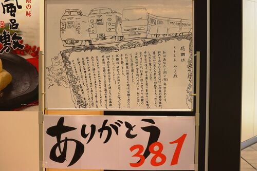 381系お疲れ様の表彰状が! ホワイトボードに…