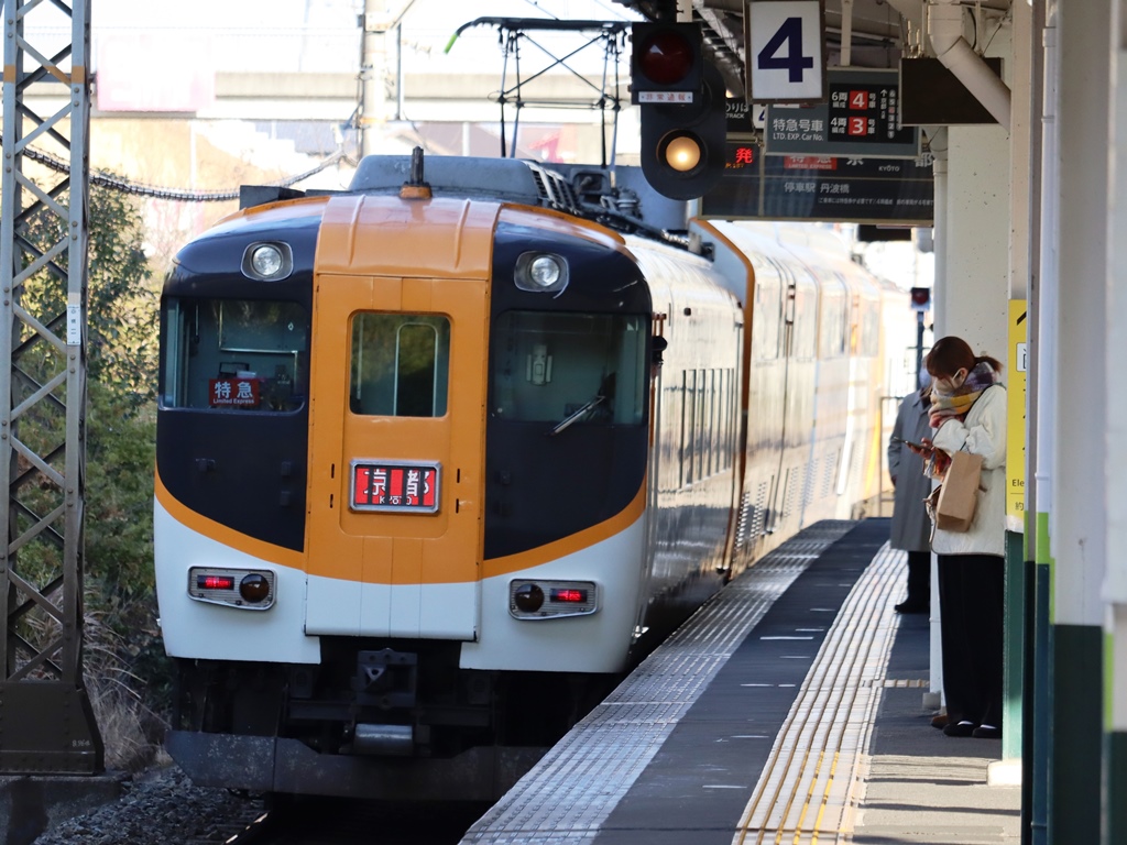 本来は4両編成で走る朝一番の特急京都行きも今日は6両編成で運用しています。
